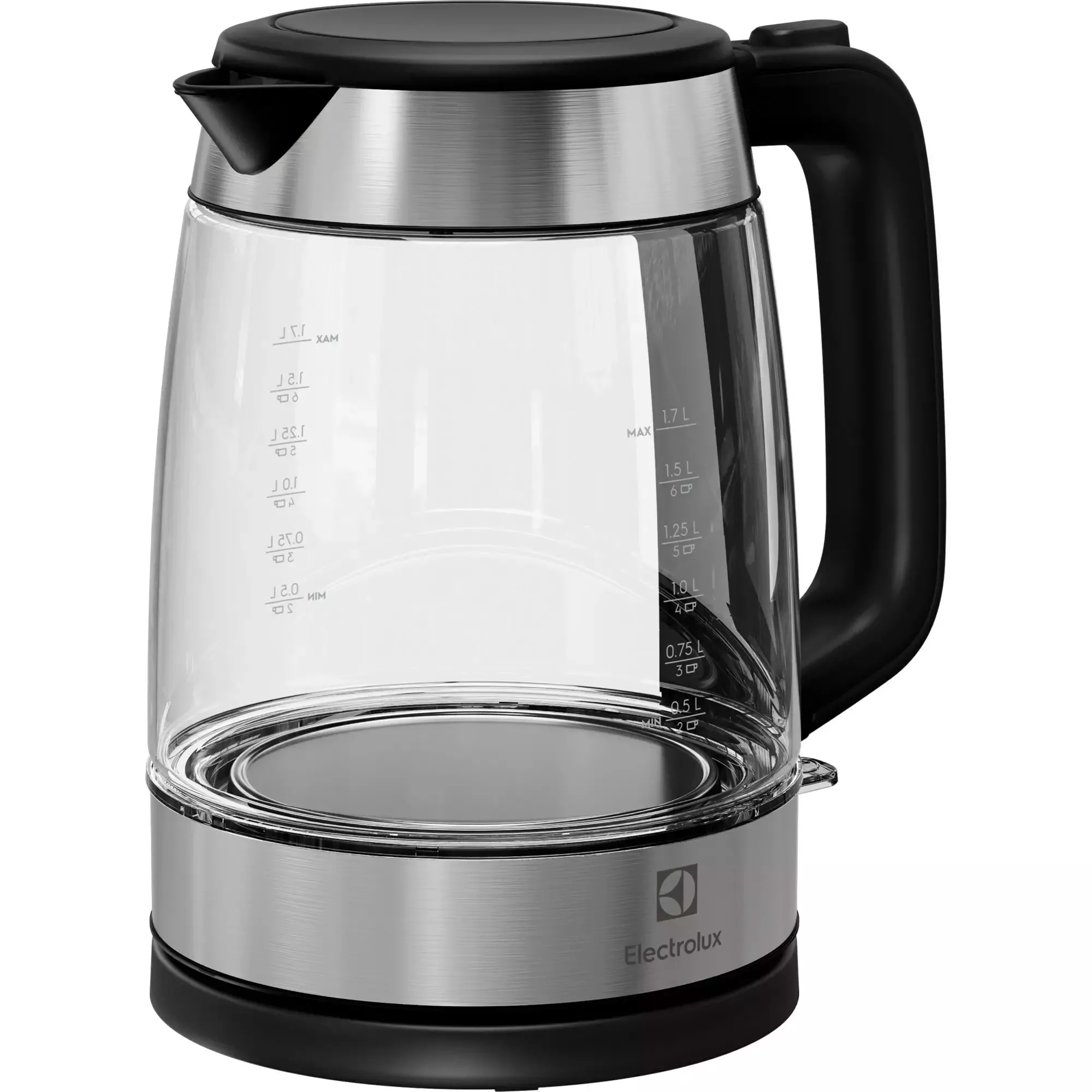Erittäin tyylikäs Electroluxin lasinen vedenkeitin, jonka tilavuus on 1,7 l.