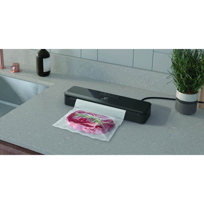 Ruoka-aineiden säilytys pidempään onnistuu helposti Electrolux tyhjiöpakkauslaitteella.