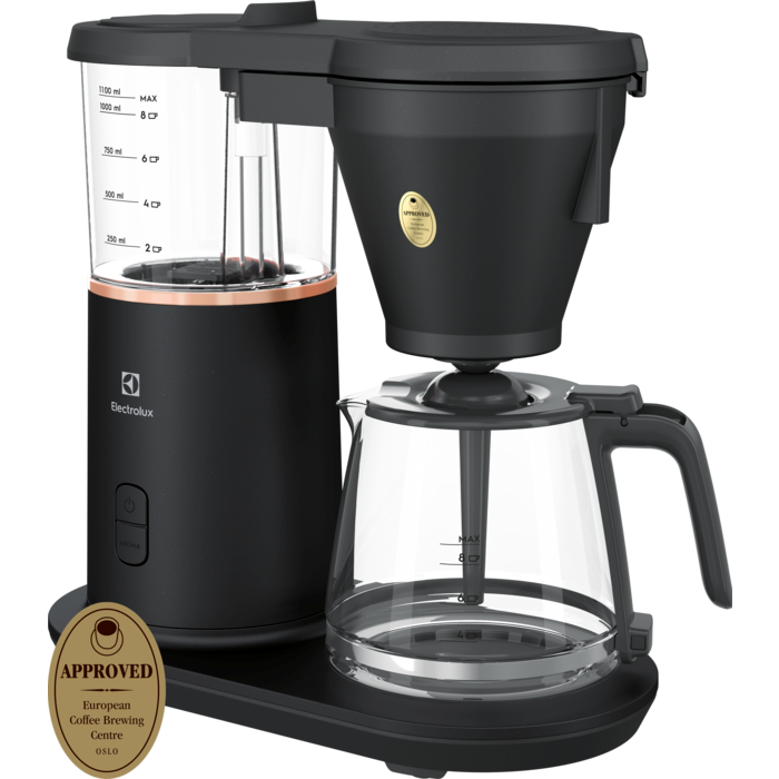 Electolux Explore 7 kahvinkeitin täyttää European Coffee Brewing Centre -standardit kaikilla seitsemällä osa-alueella esim. suodatuslämpötila 92-96°C. Voit keittä täyteläistä kahvia myös pienemmillä annosmäärillä Aroma-toiminnolla.