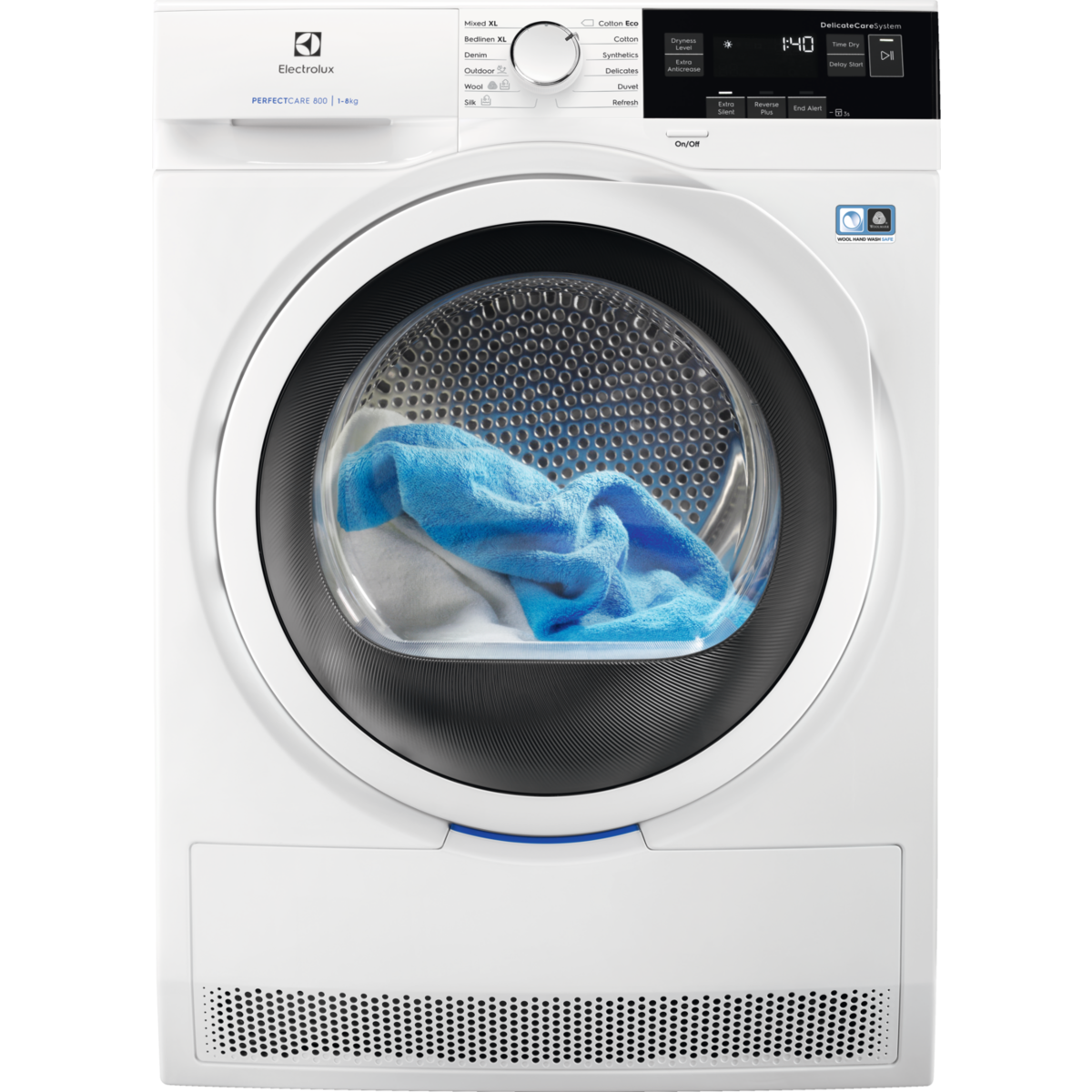 Electrolux DelicateCare-järjestelmän ansiosta PerfectCare 800 -kuivausrumpu säilyttää vaatteidesi alkuperäisen laadun ja pehmeyden. Se säätää oikean lämpötilan ja rummun liikkeen tekstiilin tyypin mukaan. Kaikkien pyykkien oikeaoppinen hoito, arkalaatuiset pyykit mukaan lukien.
