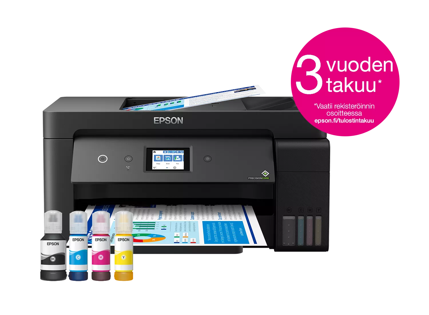 Tämän tuotteen takuun voi laajentaa kolmeen vuoteen sekä yritys- että kotikäytössä, kun rekisteröit laitteesi osoitteessa www.epson.fi/tulostintakuu. Kampanja on voimassa 31.3.2025 saakka. Katso kampanjaehdot TÄSTÄ
