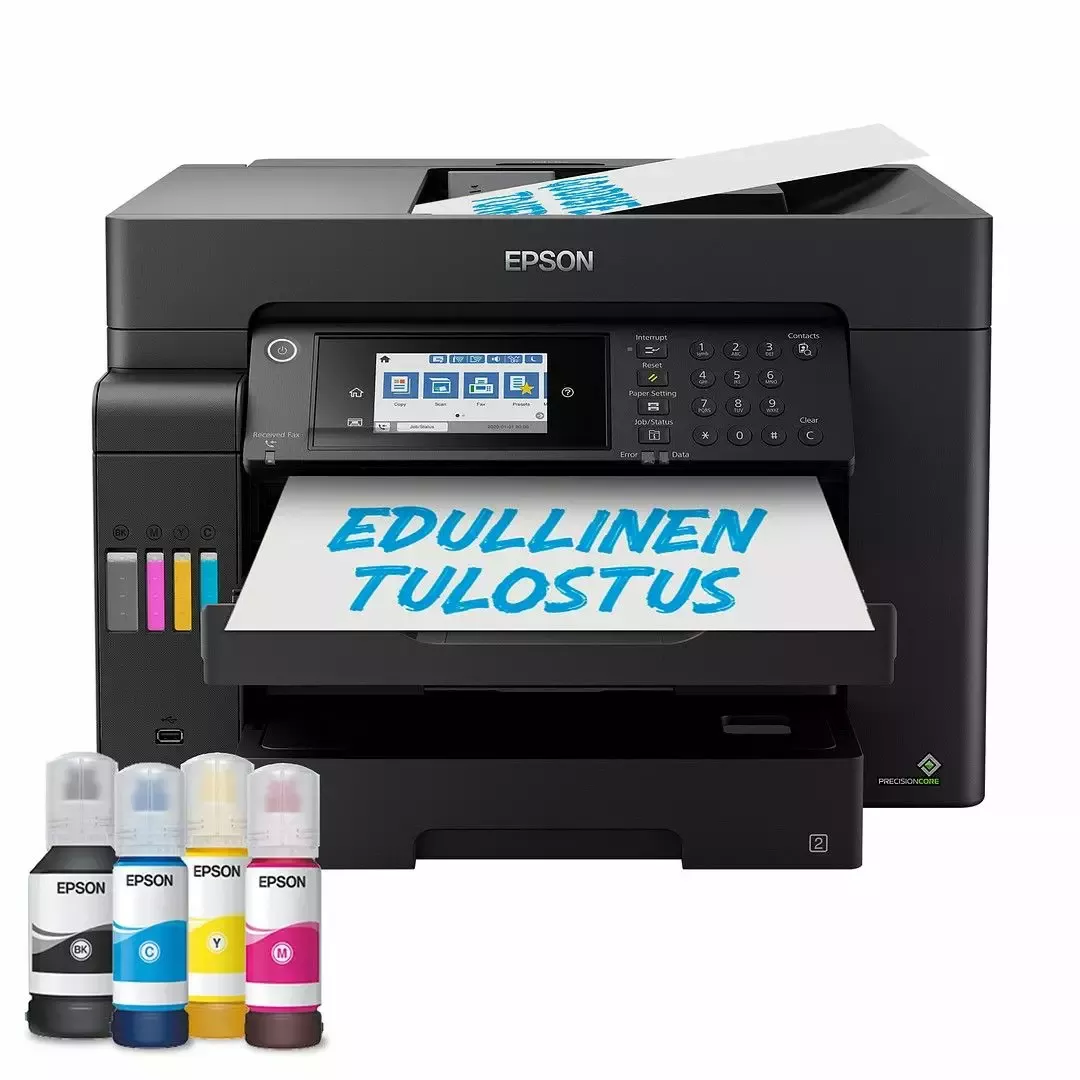 Epson EcoTank ET-16655 on monipuolinen A3-monitoimitulostin, joka on suunniteltu erityisesti yrityksille, jotka vaativat tehokkuutta, laadukasta tulostusta ja alhaisia kustannuksia. Tämä tulostin ei ole vain nopea ja luotettava, vaan sen uudelleentäytettävät mustesäiliöt tarjoavat uskomattoman alhaiset sivukohtaiset kustannukset, jotka tekevät siitä erinomaisen valinnan suurien tulostusmäärien käsittelyyn.