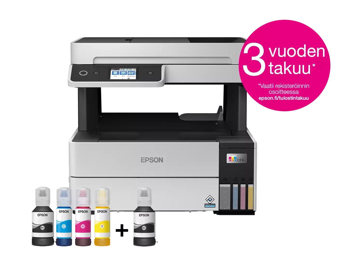 Tämän tuotteen takuun voi laajentaa kolmeen vuoteen sekä yritys- että kotikäytössä, kun rekisteröit laitteesi osoitteessa www.epson.fi/tulostintakuu. Kampanja on voimassa 31.3.2026 saakka. Katso kampanjaehdot TÄSTÄ . Tulostimen vakiotakuu yrityskäytössä on 1 vuosi tai 100 000 sivua, kumpi ensin tulee täyteen.