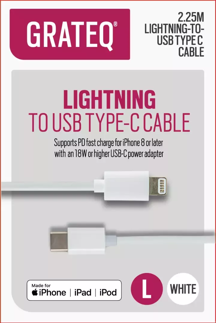 GRATEQ USB-C - MFi LIGHTNING KAAPELI PD 2.25M