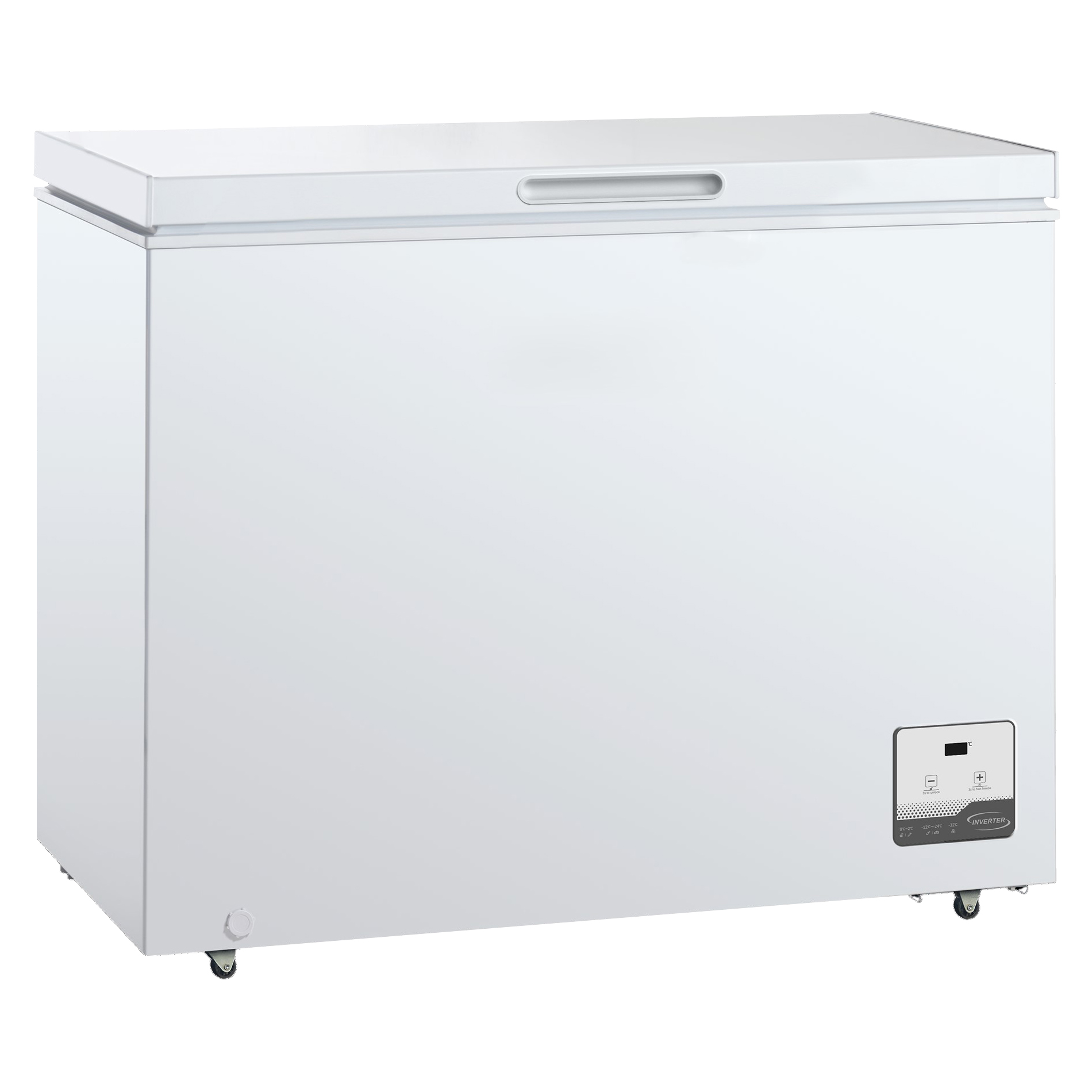 Tilava 300 litran säiliöpakastin! Kannessa on integroidut kahvan upotukset. Kansi on vastapainotettu, joka helpottaa luukun avaamista ja auki pysymistä. Mukana myös käytännöllinen lankakori. Energialuokka E.