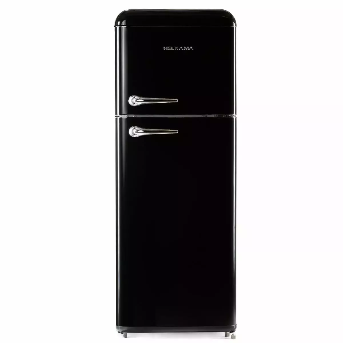 Tämä tyylikäs ja toiminnallinen retro-jenkkikaappi tuo kotiisi ripauksen klassista eleganssia ja tehokasta kylmäsäilytystä. Sen leveys on 54,5 cm ja korkeus 147 cm, minkä ansiosta se sopii kompaktisti erilaisiin keittiötiloihin kuitenkaan tinkimättä tilavuudesta. Jääkaapin nettotilavuus on 160 litraa ja pakastimen 48 litraa, tarjoten reilusti tilaa ruokien ja pakasteiden säilyttämiseen. Kaapin retrohenkisen muotoilun kruunaavat tyylikkäät metallikahvat, jotka lisäävät kaapin charmia ja kestävyyttä.