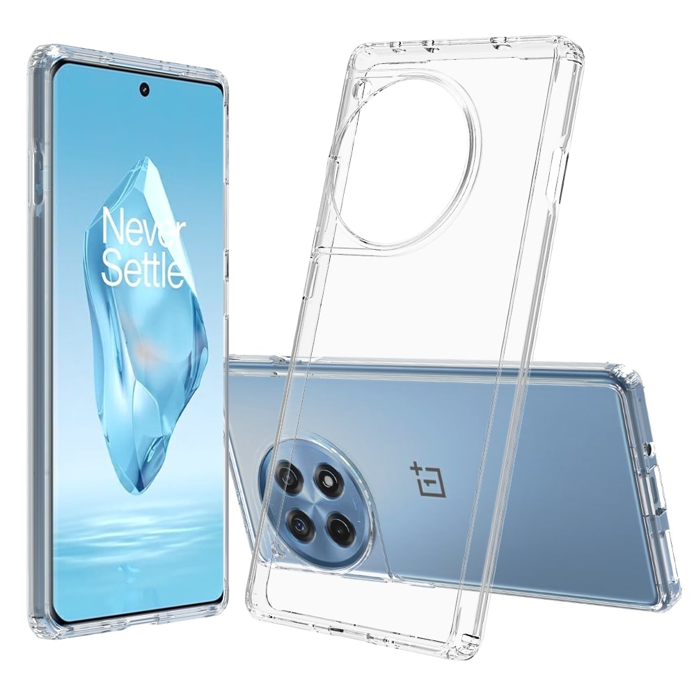 Oneplus 12R puhelimen kanssa yhteensopiva läpinäkyvä suojakuori.
