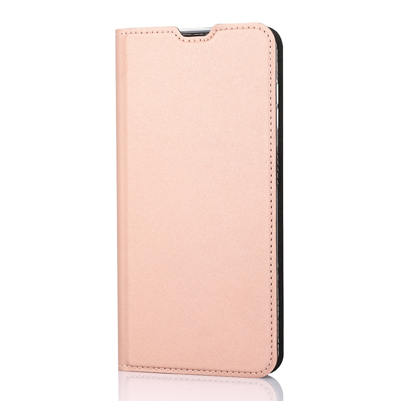 Wave Book Case ruusukultainen suojakotelo Samsung Galaxy A13 4G puhelimelle. Magneettisulkuinen kansi, korttipaikat RFID suojauksella ja läpinäkyvä muovikelkka (TPU). Pintamateriaali laadukasta nahkaa.