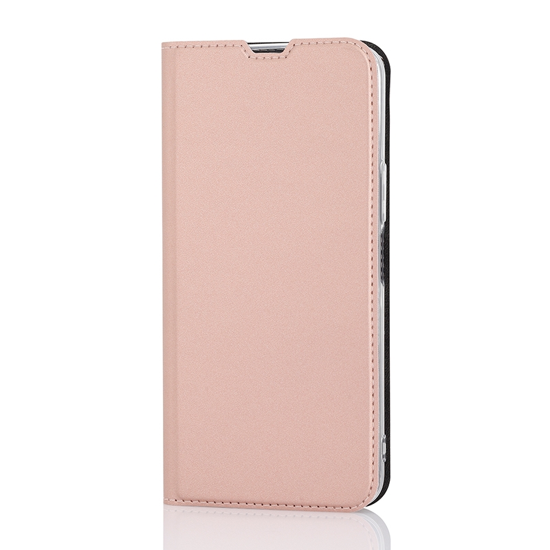 Wave Book Case ruusukultainen suojakotelo Honor X8 5G puhelimelle. Magneettisulkuinen kansi, korttipaikat RFID suojauksella ja läpinäkyvä muovikelkka (TPU). Pintamateriaali laadukasta nahkaa.