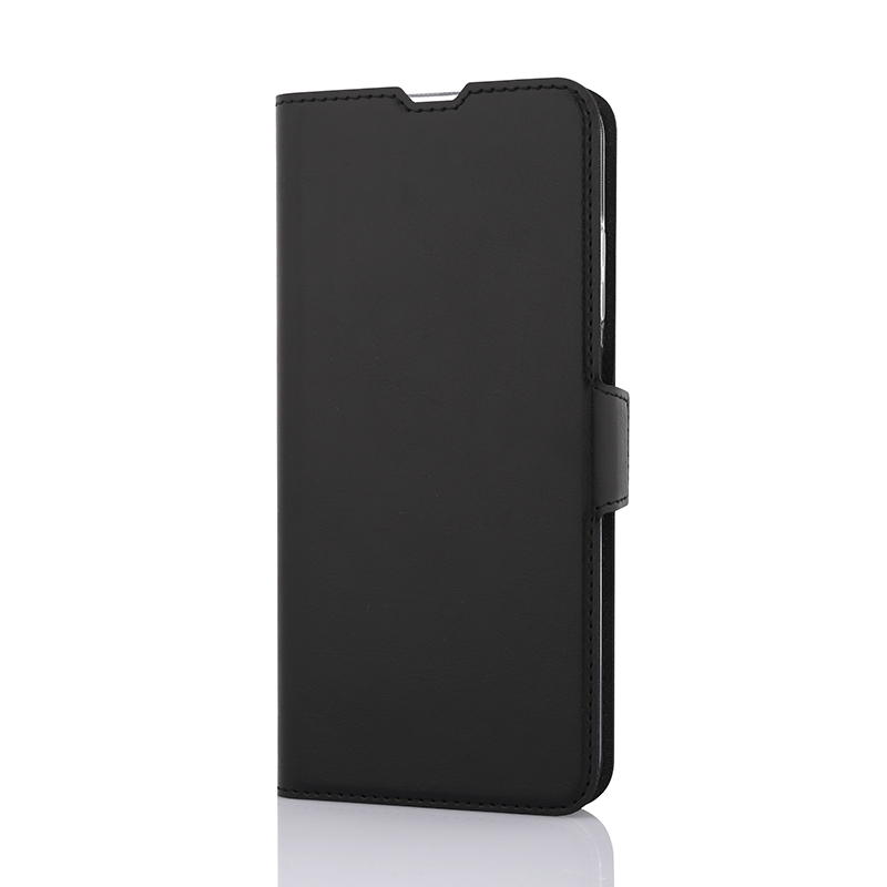 Wave Book Case musta suojakotelo Nokia G22 puhelimelle. Magneettisulkuinen kansi, korttipaikat RFID suojauksella ja läpinäkyvä muovikelkka (TPU). Pintamateriaali laadukasta nahkaa, jossa antimikrobipinnoite.