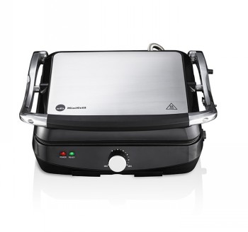 Wilfa MiniGrill on sisäkäyttöön tarkoitettu pöytägrilli 2000 watin teholla. Viimeistely harjattua terästä mattamustin yksityiskohdin. Wilfa MiniGrillillä grillaat helposti lihaa, kalaa, vihanneksia tai juustoleipiä– vuoden ympäri!