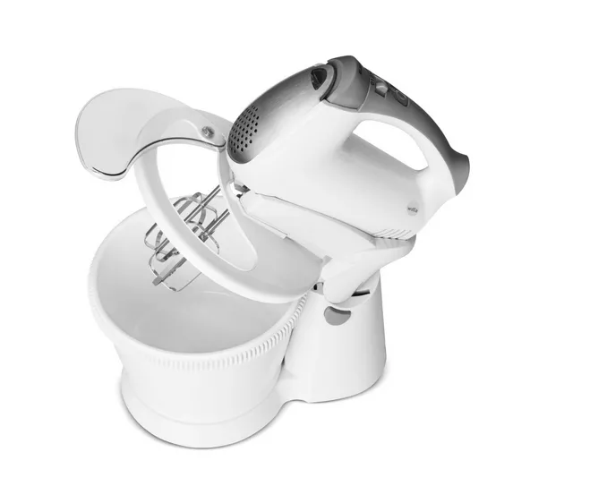 Käyttö on kätevää, kun vatkaimelle on oma teline ja kulho. Kädet ovat vapaana muiden leivonnaisaineiden käyttöön.