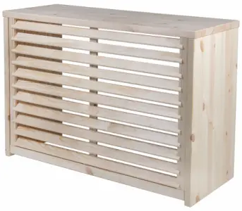 Suomessa valmistettu lujarakenteinen suojakotelo ilmalämpöpumpun ulkoyksikölle. Käsittelemätön, suomalainen mäntypuu. Puukansi on tehty liimapuulevystä säänkestävällä liimalla. Soveltuu käytettäväksi FI112 parvekejalustan kanssa.