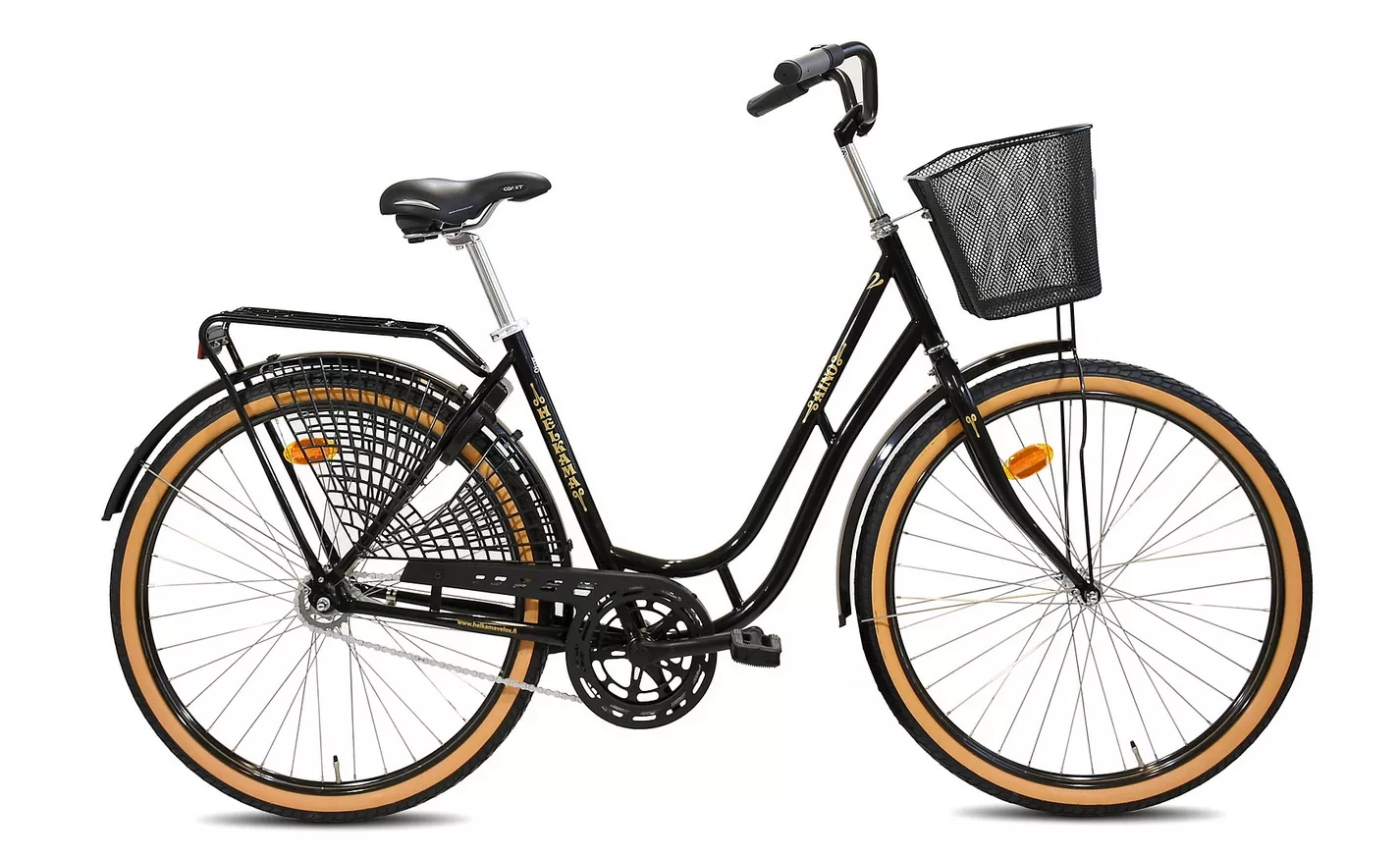 Ainon varustelu on suunniteltu arjen tarpeisiin: mukana on kaunis etukori, johon mahtuvat niin ostokset kuin treenikamat. Lisäksi pyörässä on runkolukko, seisontatuki ja hameverkko, jonka ansiosta voit ajaa huoletta housuissa, mekossa tai hameessa.