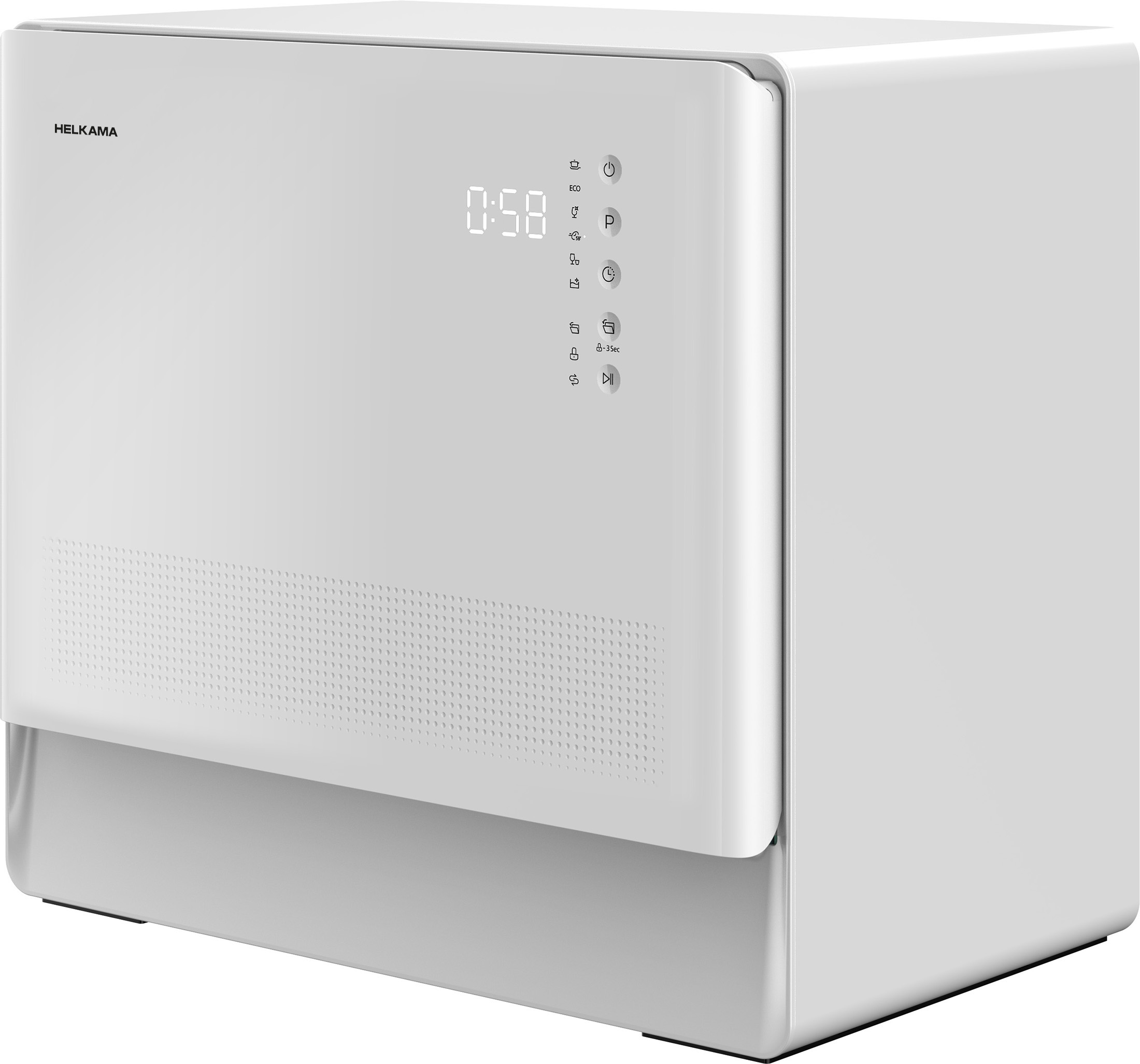 Tehokas ja tyylikäs Helkaman pöytäastianpesukone 5 henkilön astioille. Koneessa on 4 pesuvartta, jotka varmistavat tehokkaan pesutuloksen. Luukku avautuu automaattisesti pesuohjelman päätyttyä, mikä nopeuttaa astioiden kuivumista. Digitaaliselta näytöltä näet mm. jäljellä olevan pesuajan.