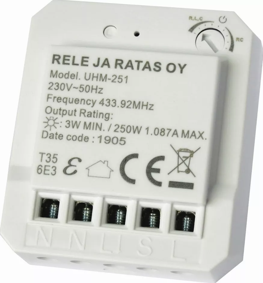 UHM‑251 on moderni ja monipuolinen uppoasennettava himmenninvastaanotin, joka yhdistää suuren kuormankeston, kompaktin koon ja erinomaisen yhteensopivuuden nykyaikaisten valaisinkuormien kanssa. Se asennetaan syöttöjännitteen ja valaisimen väliin esimerkiksi kojerasiaan tai jakorasiaan, minkä jälkeen valoja voidaan sytyttää, sammuttaa ja himmentää langattomasti Johdoton M‑ ja LC‑sarjan ohjaimilla.