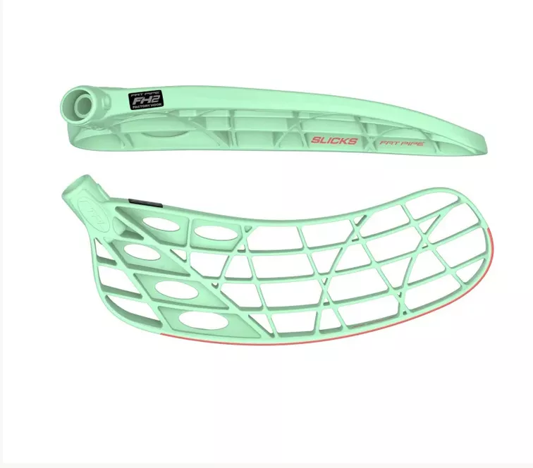 Vallankumouksellinen Fat Pipe SLICKS vie salibandylavat uudelle tasolle. Pehmeän tuntuman PP-lapa on nyt varustettu SLICKS-liukukiskolla, joka tarjoaa maksimaalisen liu’un. PE-muovista valmistettu Slicks-liukukisko antaa paremman liu’un verrattuna tavallisiin PP-lapoihin, samalla säilyttäen PP-muovin tuntuman lavassa. Nykyaikaisen pelintekijän lapa. Lapa ylivertaiseen pallonkäsittelyyn kaatuvalla kärjellä. Jäykkä kantarakenne ja tasainenkoveruus hyvällä pallokosketuksella. Kaatuva lavan kärki huimaan pallonkäsittelyyn ja laadukkaisiin laukauksiin. FH2 on pelaajien toiveiden pohjalta kehitetty esikäyristys. Lavasta löytyy pyöreyttä koko lavan mitalta höystettynä kevyellä peilillä.