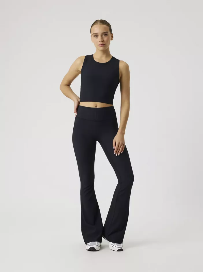 Björn Borg Studio Ribbed Flare Tights – naisten ribbitekstuuriset ja tyylikkäästi levenevät treenitrikoot