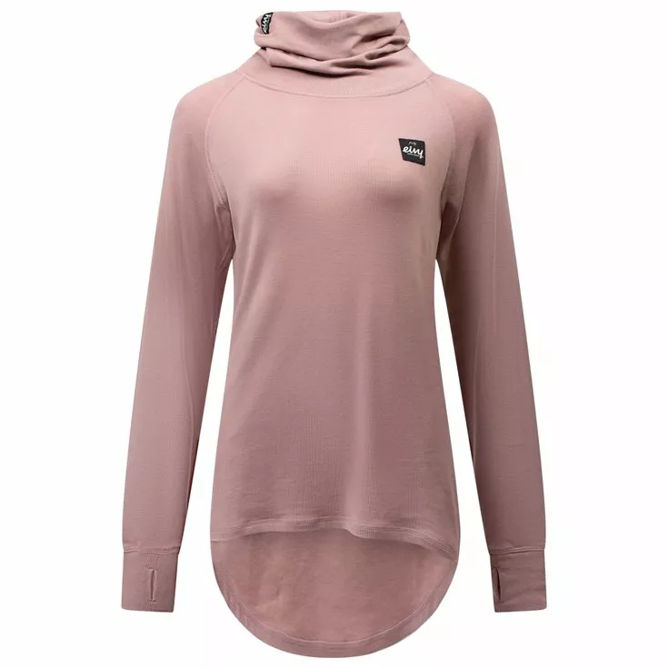 Pidennetty selkäosa ja korkea kaulus – joka nousee erityisen korkealle takaa – tarjoavat lisälämpöä ja suojaa kylmää vastaan. Kaulus on helppo sujauttaa pipon tai kypärän alle. Litteät flatlock-saumat ehkäisevät hiertymiä, ja peukalolenkit pitävät hihat paikallaan aktiivisessakin käytössä.