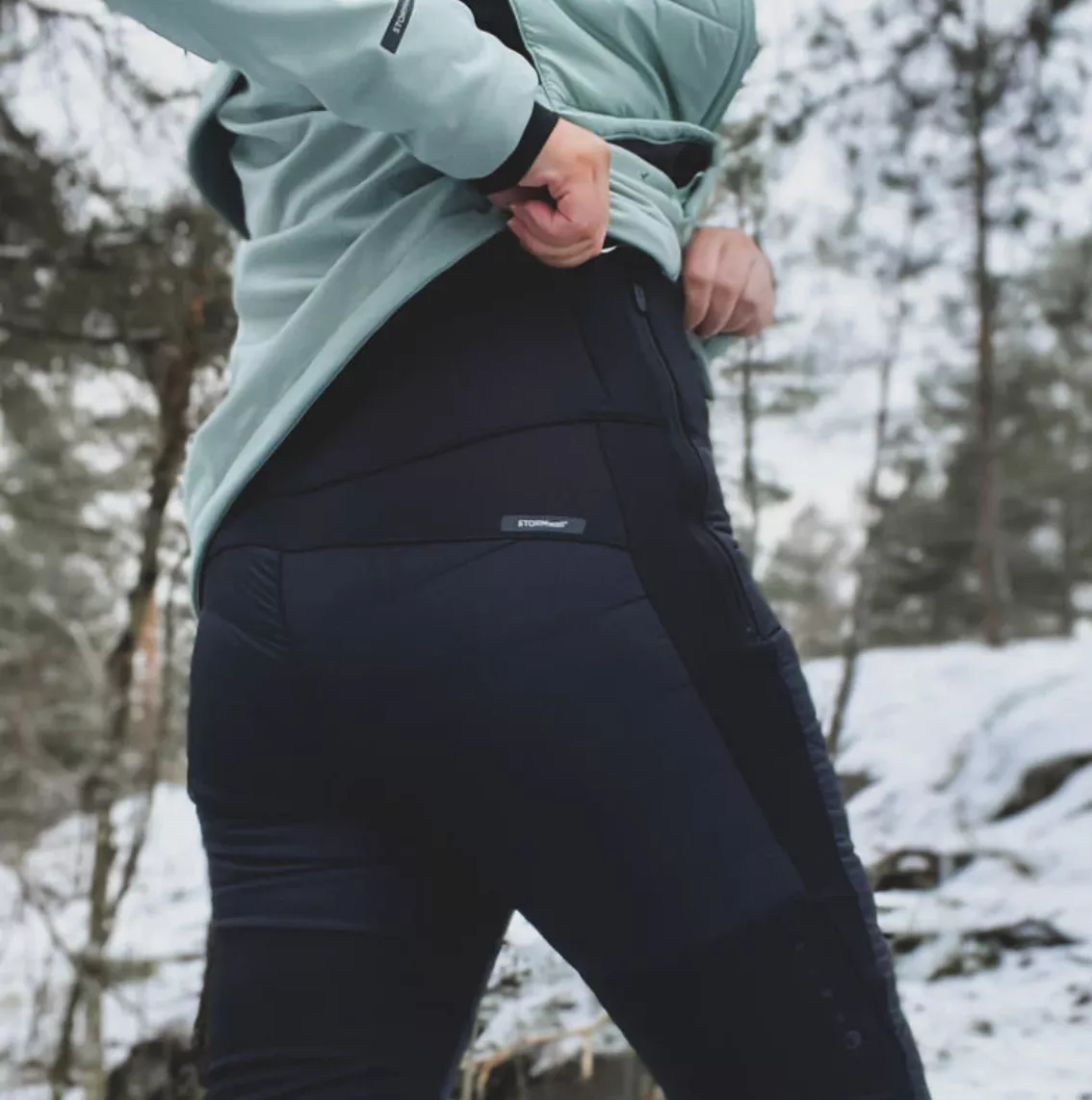 Housujen etureisien sekä takapuolen paneelit on täytetty kierrätetyllä Microtherm® -vanulla, joka on erittäin lämmityskykyinen ja kevyt eristemateriaali. Lämpimät paneelit yhdistettyinä tuulenpitävään Stormwall® -kalvoon ja joustava materiaali takaavat huippuluokan treenikokemuksen kylmissä olosuhteissa. Heijastavat yksityiskohdat tuovat housuihin näyttävän ulkonäön ja näkyvyyttä pimeänä vuodenaikana.
