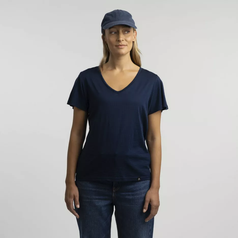 Paita on valmistettu laadukkaasta merinovillan ja lyocellin sekoituksesta, joka tuntuu pehmeältä, laskeutuu kauniisti ja mukautuu kehon lämpötilaan ympäri vuoden. 17,5 mikronin mulesing‑vapaa merinovilla on erittäin hienoa ja siksi erityisen pehmeää ihoa vasten. Luonnostaan antibakteerinen materiaali pysyy raikkaana pitkään ilman jatkuvaa pesua, mikä tekee Avasta erinomaisen valinnan arkeen ja matkustamiseen.