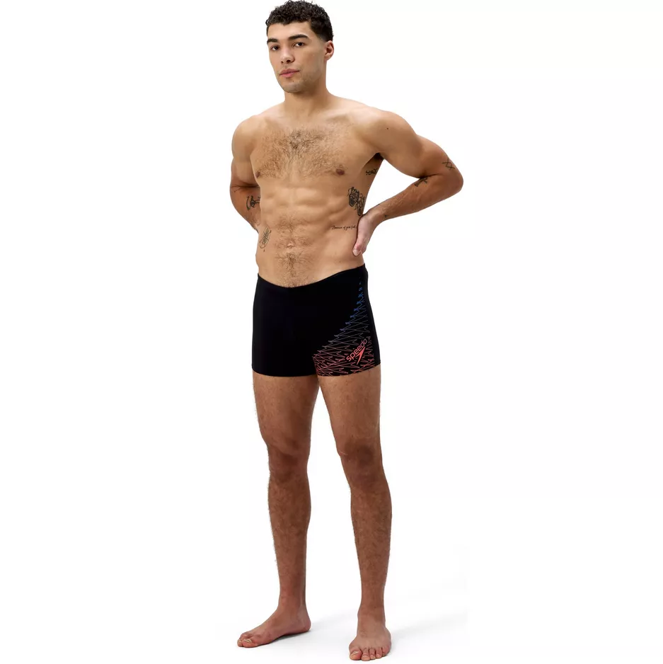 Speedo Medley Logo Aquashort Men on tyylikäs ja kestävä miesten aquashort-uimahousu, joka kuuluu Speedon Essentials-sarjaan. Urheilullinen ilme ja epäsymmetrinen kineettinen aaltokuvio tuovat modernia tyyliä niin harjoitteluun kuin vapaa-ajan uintiin.